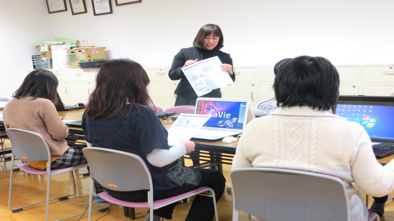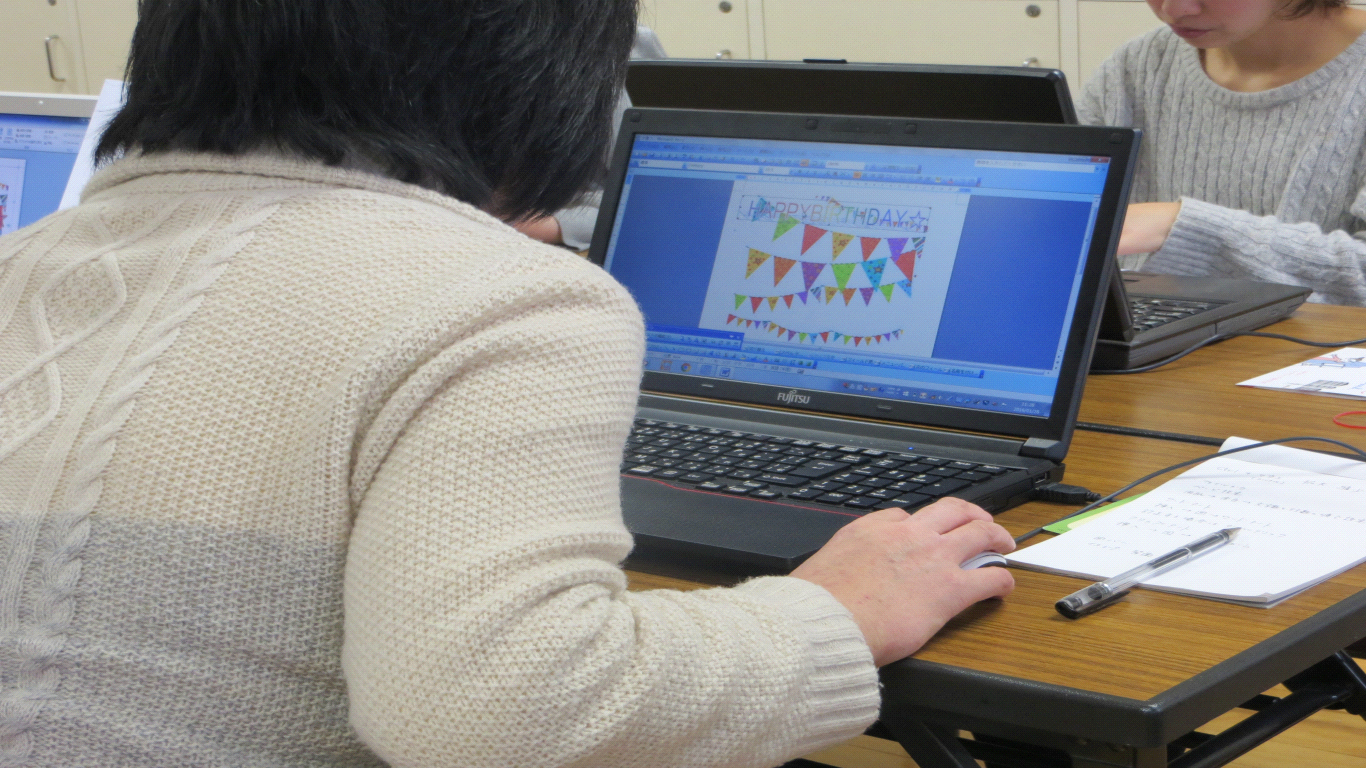 パソコンに電源を入れることから始まった講座も、皆さんの集中力と先生のアドバイスで、どんどん形に。