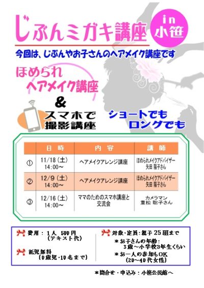 ・11月18日(土) 「子供や自分の為のヘアメイク・ヘアアレンジ講座①」(資料代:500円)